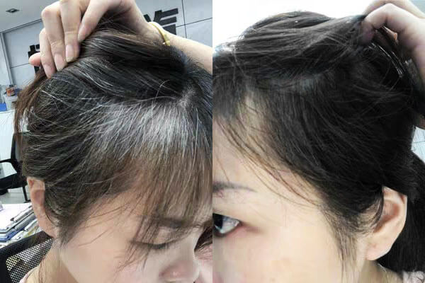 用60天后,受损毛囊彻底修复完毕,黑素细胞恢复正常功能,黑色素不断的生成并输送到毛干,白发便能全部的变黑,之前的发质问题全部得到了改善,头发变得又黑又有光泽,摸上去又滑又有弹性,终于找回属于自己的黑头发!